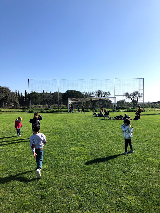 Avui aprofitant que ha sortit el sol, hem anat d’excursió al camp de futbol. Ens ho hem passat d’allò més bé, corrent amunt i avall, descobrint cada racó del camp.